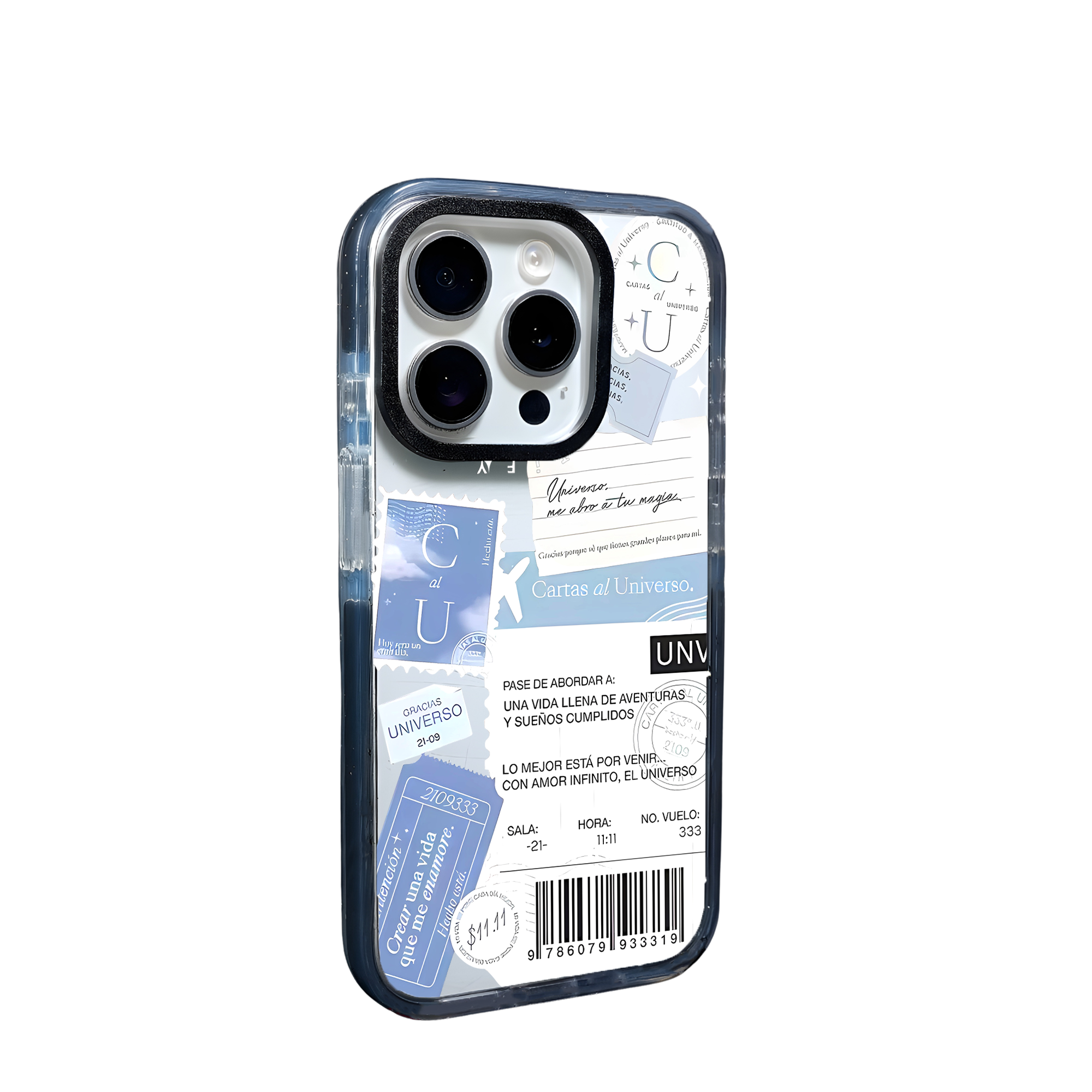 This calming, celestial design blends pastel skies, boarding pass aesthetics, and Spanish affirmations of gratitude — creating a visual reminder that the universe is always listening. With words like “Crear una vida que me enamore” (“Create a life I fall in love with”) and “Gracias, Universo” (“Thank you, Universe”), this case radiates positivity and self-belief