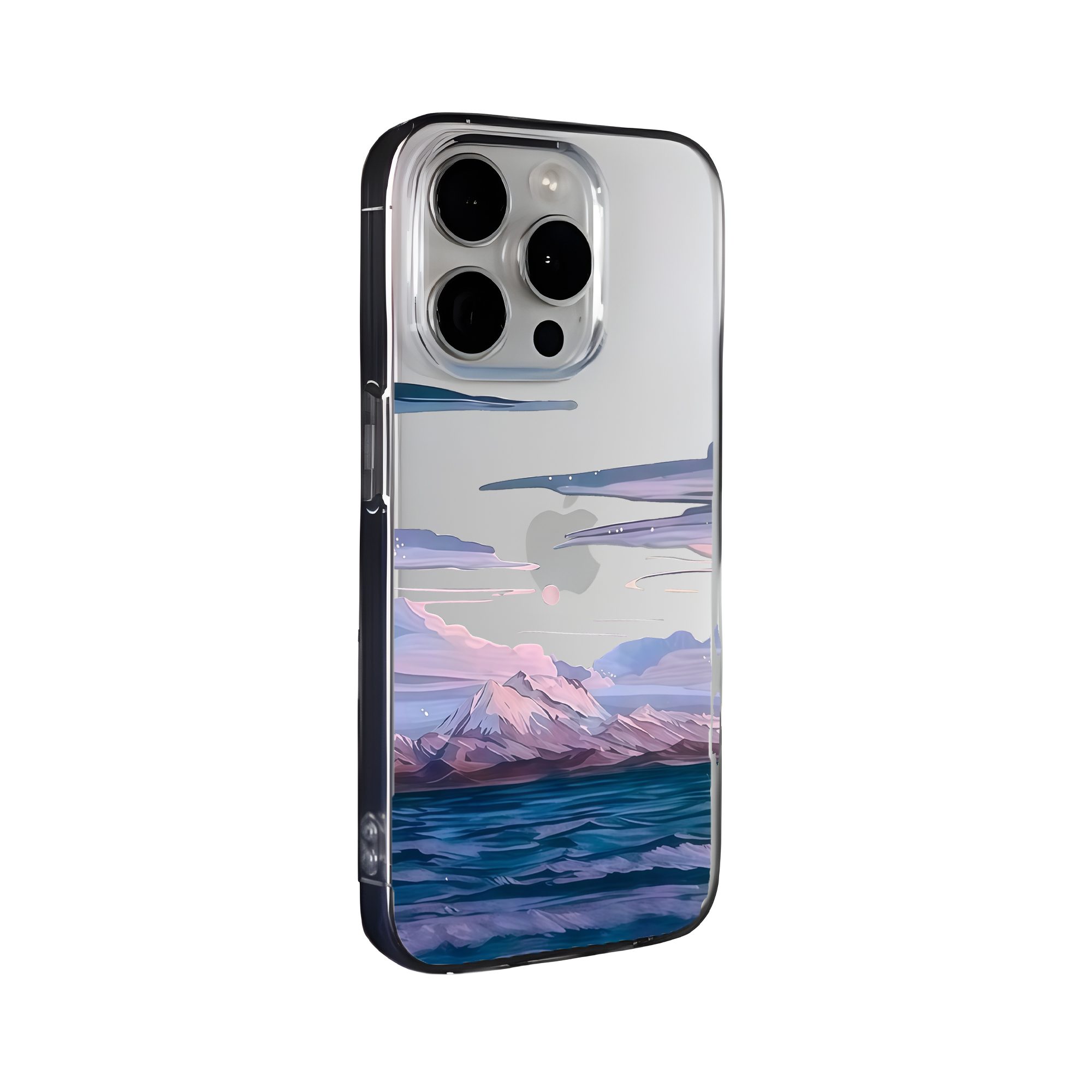 Bring calm wherever you go with the Serene Horizon Phone Case. This stunning design captures a tranquil mountain range reflected across deep blue waters under a pastel sky — a perfect balance of peace and beauty. The soft hues of lavender, blue, and rose blend seamlessly, creating a dreamy, painterly effect that evokes stillness and inspiration
